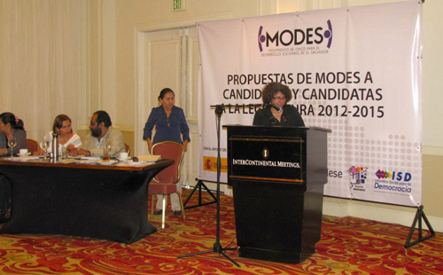 Ante la participación de cerca de cuatrocientas personas, provenientes de todo el país, candidata y candidatos de partidos políticos, y candidatos no partidarios, se comprometieron a llevar adelante las propuestas legislativas presentadas por el Movimiento de ONGD para el Desarrollo Solidario de El Salvador, MODES.