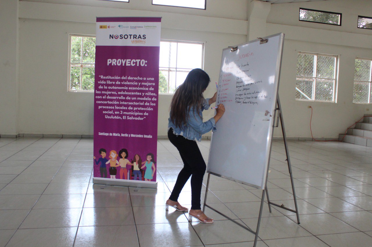 El proyecto tiene como meta principal mejorar el ejercicio de los Derechos Humanos (DDHH) de mujeres, adolescentes y niñas en situación de riesgo de violencia en tres municipios de Usulután (Santiago de María, Mercedes Umaña, Berlín), mediante el desarrollo de un modelo de concertación intersectorial. Este modelo fortalecerá la gobernabilidad local en los procesos de protección social con enfoques preventivos, inclusivos y equitativos. Se implementarán las siguientes estrategias: